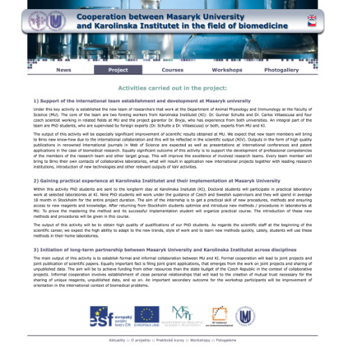 Dept. of Animal Physiology, Masaryk University, Czechia. Responsible for creating and maintaing department, conference and other websites. Technical support for computers connected to scientific instruments.